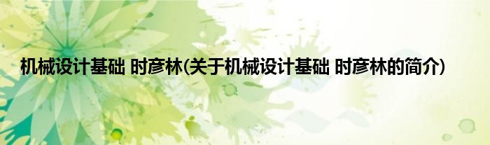 本文关于机械设计基础 时彦林的简介就讲解完毕,希望对大家有所帮助。