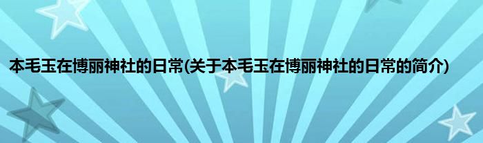 本文关于本毛玉在博丽神社的日常的简介就讲解完毕,希望对大家有所帮助。