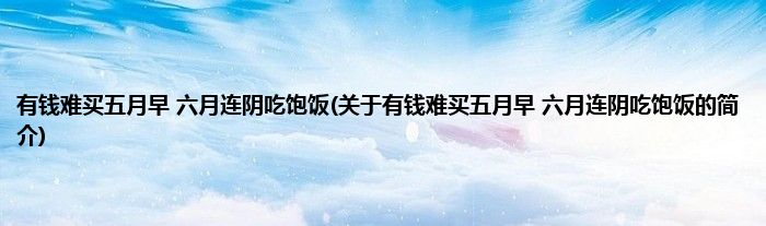 大家好,有钱难买五月早,六月连阴吃饱饭,关于有钱难买五月早,六月连阴吃饱饭的简介很多人还不知道,现在让我们一起来看看吧!