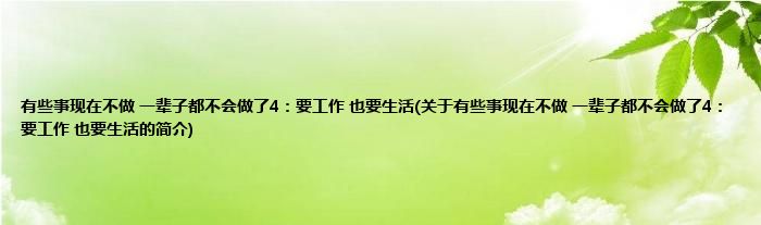 本文关于有些事现在不做,一辈子都不会做了4:要工作,也要生活的简介就讲解完毕,希望对大家有所帮助。