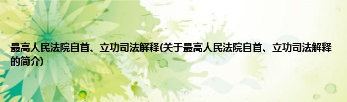 大家好,最高人民法院自首、立功司法解释,关于最高人民法院自首、立功司法解释的简介很多人还不知道,现在让我们一起来看看吧!