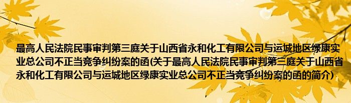 本文关于最高人民法院民事审判第三庭关于山西省永和化工有限公司与运城地区绿康实业总公司不正当竞争纠纷案的函的简介就讲解完毕,希望对大家有所帮助。