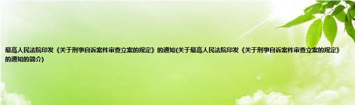 本文关于最高人民法院印发《关于刑事自诉案件审查立案的规定》的通知的简介就讲解完毕,希望对大家有所帮助。