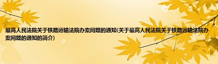 本文关于最高人民法院关于铁路运输法院办案问题的通知的简介就讲解完毕,希望对大家有所帮助。