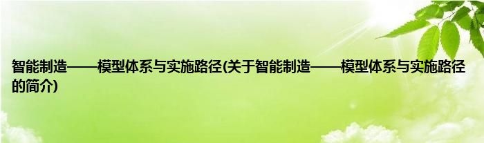 智能制造——模型体系与实施路径(关于智能制造——模型体系与实施路径的简介)