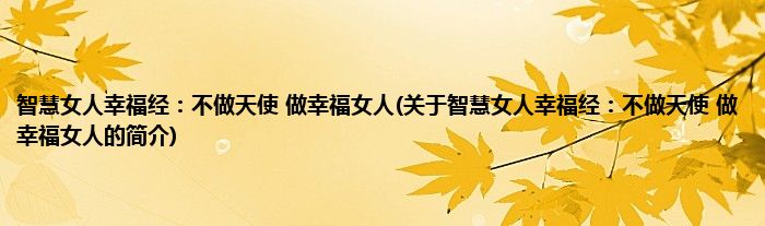 本文关于智慧女人幸福经:不做天使,做幸福女人的简介就讲解完毕,希望对大家有所帮助。