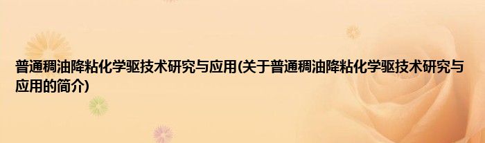 本文关于普通稠油降粘化学驱技术研究与应用的简介就讲解完毕,希望对大家有所帮助。