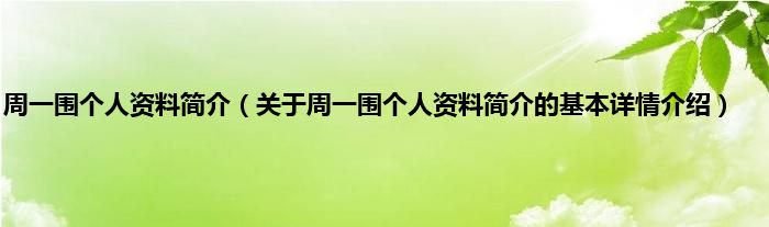 本文关于周一围个人资料简介的基本详情介绍就讲解完毕,希望对大家有所帮助。