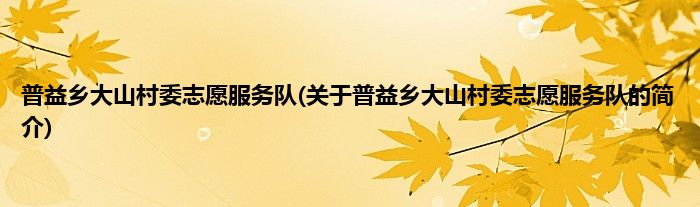 本文关于普益乡大山村委志愿服务队的简介就讲解完毕,希望对大家有所帮助。
