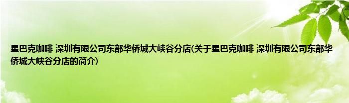 本文关于星巴克咖啡 深圳有限公司东部华侨城大峡谷分店的简介就讲解完毕,希望对大家有所帮助。