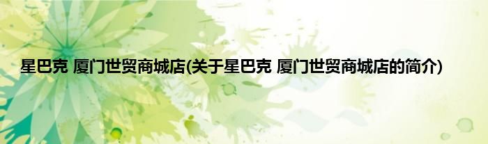 大家好,星巴克 厦门世贸商城店,关于星巴克 厦门世贸商城店的简介很多人还不知道,现在让我们一起来看看吧!