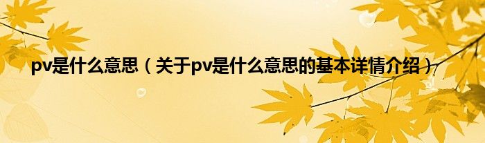 本文关于pv是什么意思的基本详情介绍就讲解完毕,希望对大家有所帮助。