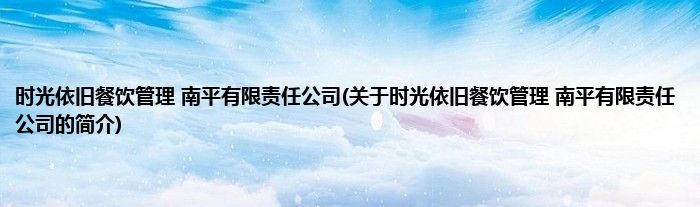 本文关于时光依旧餐饮管理 南平有限责任公司的简介就讲解完毕,希望对大家有所帮助。