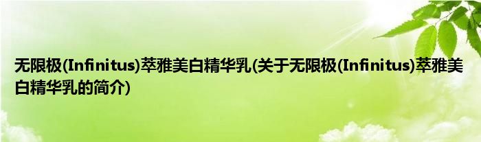 最佳答案大家好,无限极,Infinitus萃雅美白精华乳,关于无限极,Infinitus萃雅美白精华乳的简介很多人还不知道,现在让我们一起来看看吧! 1、 无限极(Infinitus)萃雅美白精华乳是一款精华乳。本文关于无限极(Infinitus)萃雅美白精华乳的简介就讲解完毕,希望对大家有所帮助。