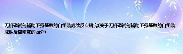 本文关于无机磷试剂辅助下氨基酸的自组装成肽反应研究的简介就讲解完毕,希望对大家有所帮助。
