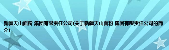 大家好,新疆天山面粉 集团有限责任公司,关于新疆天山面粉 集团有限责任公司的简介很多人还不知道,现在让我们一起来看看吧!