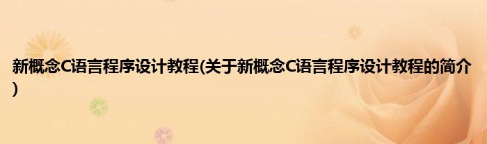 新概念C语言程序设计教程(关于新概念C语言程序设计教程的简介)