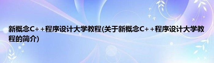 本文关于新概念C++程序设计大学教程的简介就讲解完毕,希望对大家有所帮助。