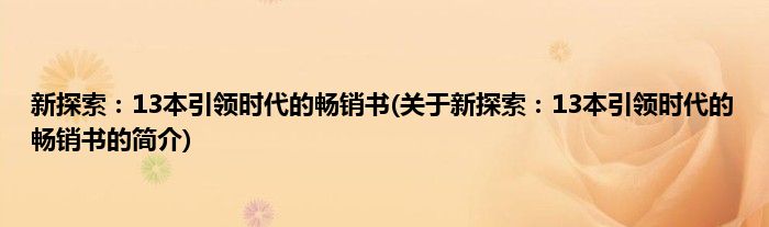 新探索:13本引领时代的畅销书(关于新探索:13本引领时代的畅销书的简介)