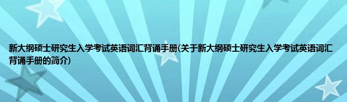 本文关于新大纲硕士研究生入学考试英语词汇背诵手册的简介就讲解完毕,希望对大家有所帮助。