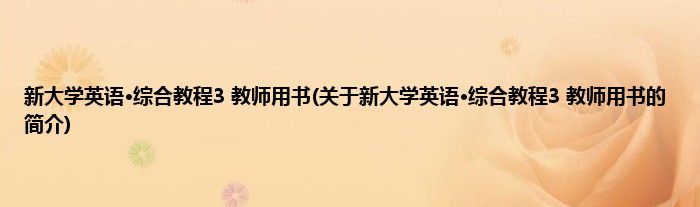 本文关于新大学英语·综合教程3 教师用书的简介就讲解完毕,希望对大家有所帮助。