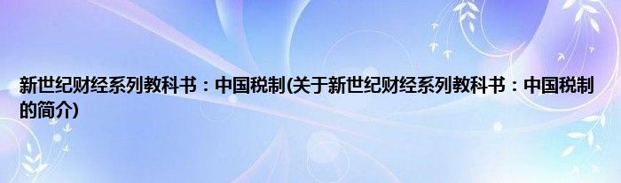 本文关于新世纪财经系列教科书:中国税制的简介就讲解完毕,希望对大家有所帮助。