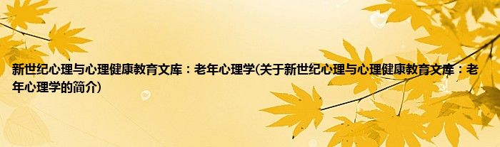 本文关于新世纪心理与心理健康教育文库:老年心理学的简介就讲解完毕,希望对大家有所帮助。