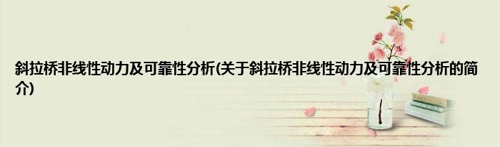 本文关于斜拉桥非线性动力及可靠性分析的简介就讲解完毕,希望对大家有所帮助。
