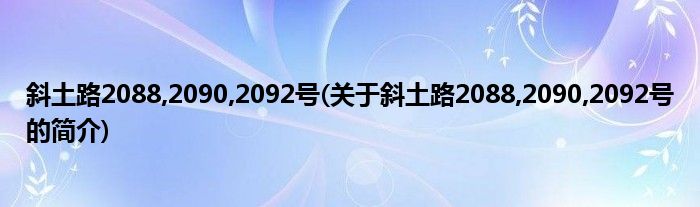 本文关于斜土路2088,2090,2092号的简介就讲解完毕,希望对大家有所帮助。