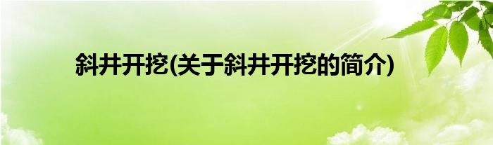 大家好,斜井开挖,关于斜井开挖的简介很多人还不知道,现在让我们一起来看看吧!