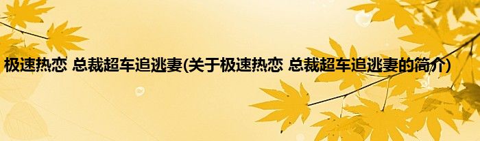 本文关于极速热恋,总裁超车追逃妻的简介就讲解完毕,希望对大家有所帮助。