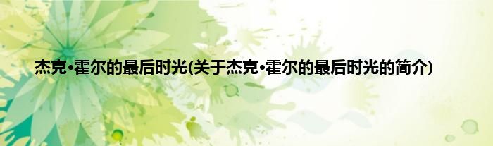 大家好,杰克·霍尔的最后时光,关于杰克·霍尔的最后时光的简介很多人还不知道,现在让我们一起来看看吧!