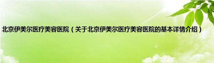 本文关于北京伊美尔医疗美容医院的基本详情介绍就讲解完毕,希望对大家有所帮助。