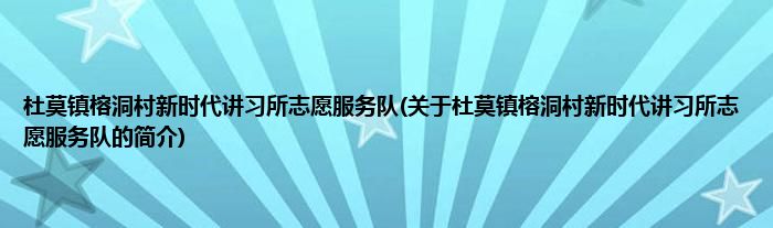本文关于杜莫镇榕洞村新时代讲习所志愿服务队的简介就讲解完毕,希望对大家有所帮助。