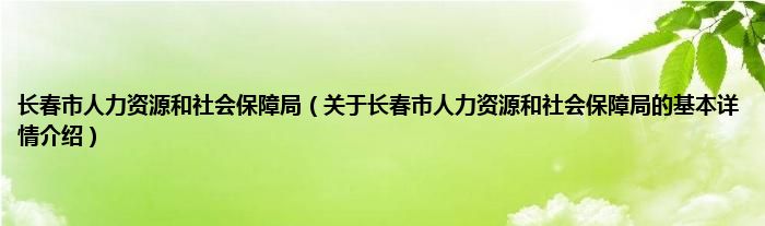 长春市人力资源和社会保障局(关于长春市人力资源和社会保障局的基本详情介绍)