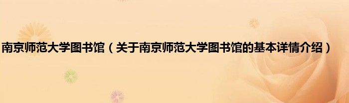 本文关于南京师范大学图书馆的基本详情介绍就讲解完毕,希望对大家有所帮助。