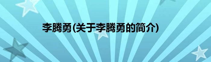 本文关于李腾勇的简介就讲解完毕,希望对大家有所帮助。