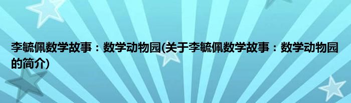 本文关于李毓佩数学故事:数学动物园的简介就讲解完毕,希望对大家有所帮助。