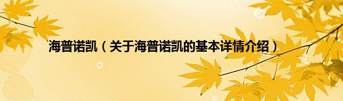 本文关于海普诺凯的基本详情介绍就讲解完毕,希望对大家有所帮助。