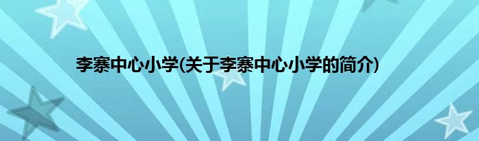 大家好,李寨中心小学,关于李寨中心小学的简介很多人还不知道,现在让我们一起来看看吧!
