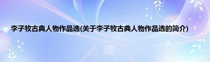 本文关于李子牧古典人物作品选的简介就讲解完毕,希望对大家有所帮助。