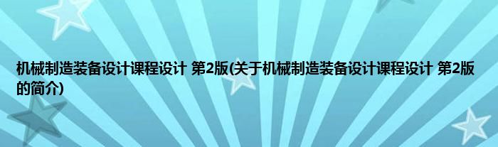 本文关于机械制造装备设计课程设计 第2版的简介就讲解完毕,希望对大家有所帮助。