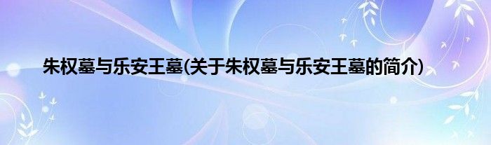 本文关于朱权墓与乐安王墓的简介就讲解完毕,希望对大家有所帮助。