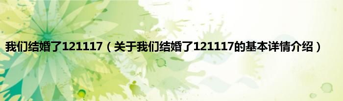 本文关于我们结婚了121117的基本详情介绍就讲解完毕,希望对大家有所帮助。