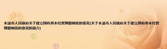 1、 本溪市人民政府关于建立国有资本经营预算制度的意见。