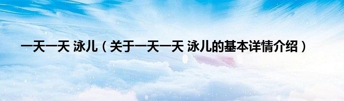 本文关于一天一天 泳儿的基本详情介绍就讲解完毕,希望对大家有所帮助。