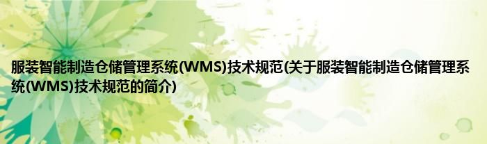 本文关于服装智能制造仓储管理系统(WMS)技术规范的简介就讲解完毕,希望对大家有所帮助。