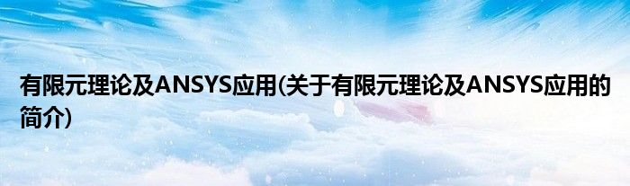 本文关于有限元理论及ANSYS应用的简介就讲解完毕,希望对大家有所帮助。