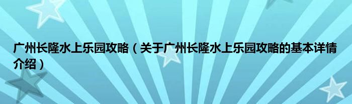 本文关于广州长隆水上乐园攻略的基本详情介绍就讲解完毕,希望对大家有所帮助。