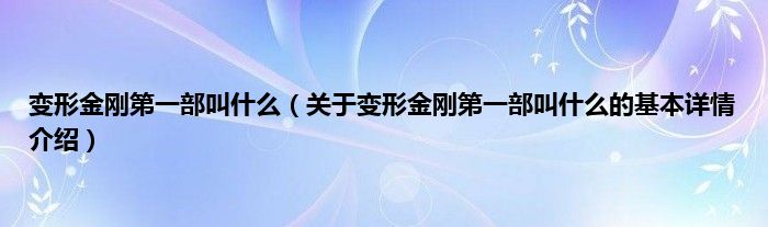 本文关于变形金刚第一部叫什么的基本详情介绍就讲解完毕,希望对大家有所帮助。